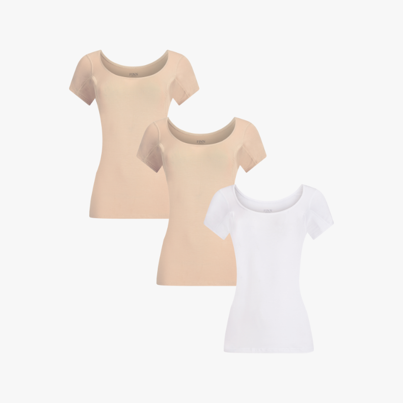 Neben unserer formenden Shapewear bieten wir auch innovative Anti-Schweiß Unterwäsche für Damen an – von klassischen Anti-Schweiß Shirts bis hin zum neuen Bustier Top für luftig-leichten Schutz. Diese Shirts sind in Weiß, Schwarz und unsichtbarer Hautfarbe erhältlich und bieten 100% Schutz vor Schweißflecken unter den Achseln. Hergestellt aus atmungsaktivem Lenzing® Modal, sind sie nicht nur extrem bequem, sondern auch antibakteriell und geruchsneutralisierend.