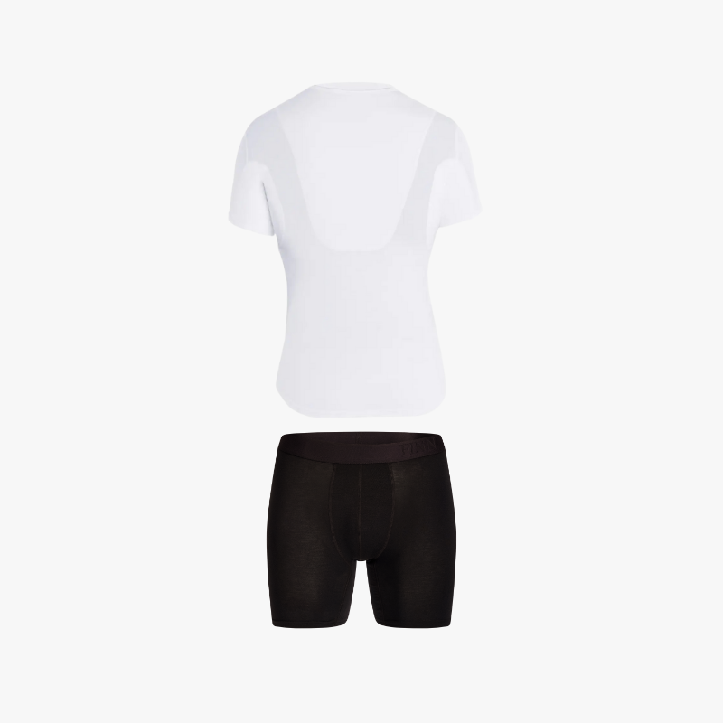 Unsere Anti-Schweiß Unterhemden und Boxershorts in Weiß, Schwarz oder unsichtbarer Hautfarbe bieten nicht nur maximalen Schutz vor Schweißflecken, sondern auch unvergleichlichen Komfort. Hergestellt aus feinstem Mikro-Modal, fühlen sie sich weicher an als Baumwolle und bieten dank doppelt gelegter Flachnähte höchsten Tragekomfort.